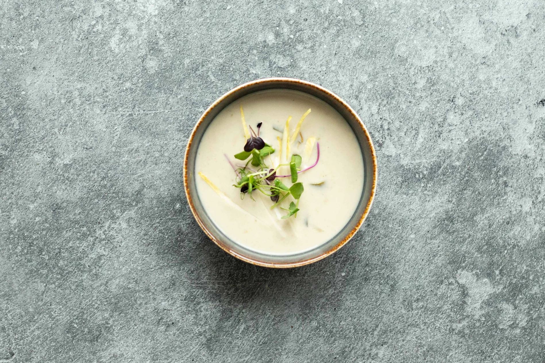 Romige soep met stukjes witloof en prei (1liter is voldoende voor 4 borden)